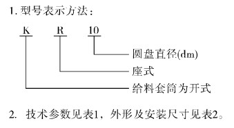 2、KR座式圓盤給料機(jī)給料套筒為開式;